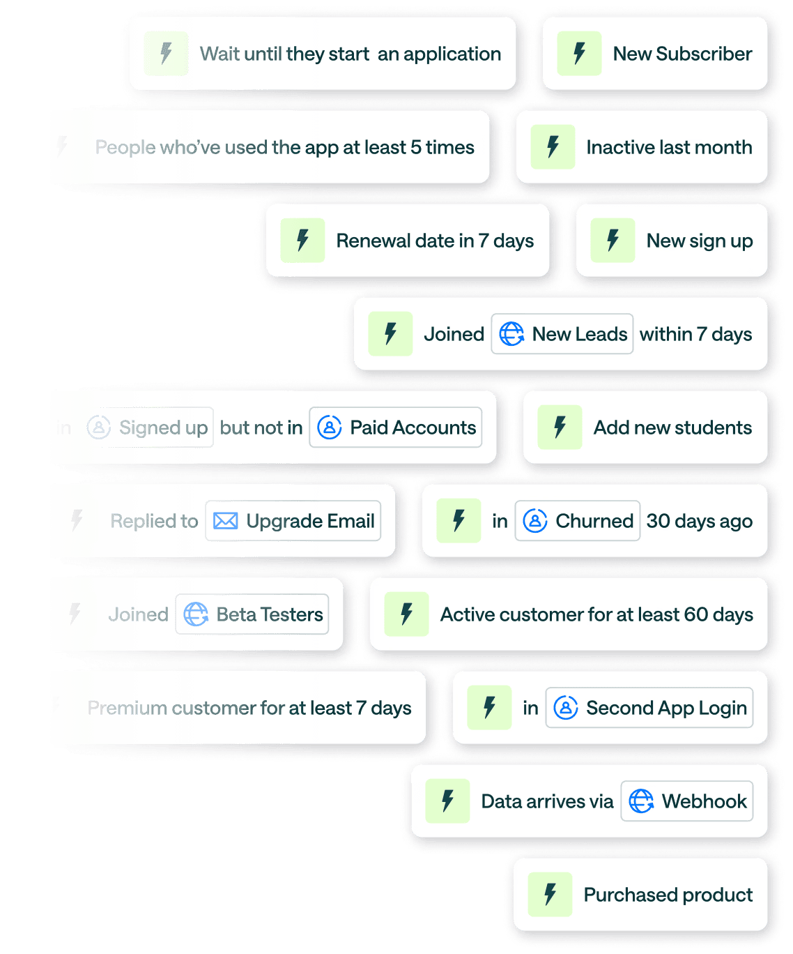 Customize in real time using campaign triggers based on segments, events, dates, custom objects, and more.