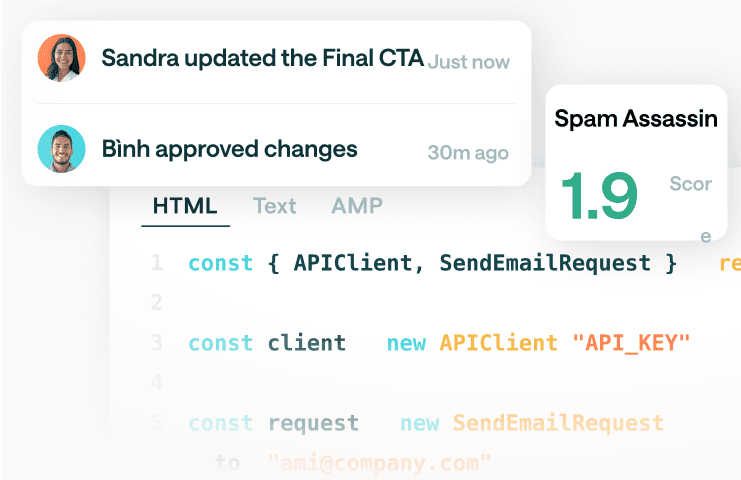 Gain granular control over your email content with our robust HTML code builder. Develop effective and scalable email design systems.