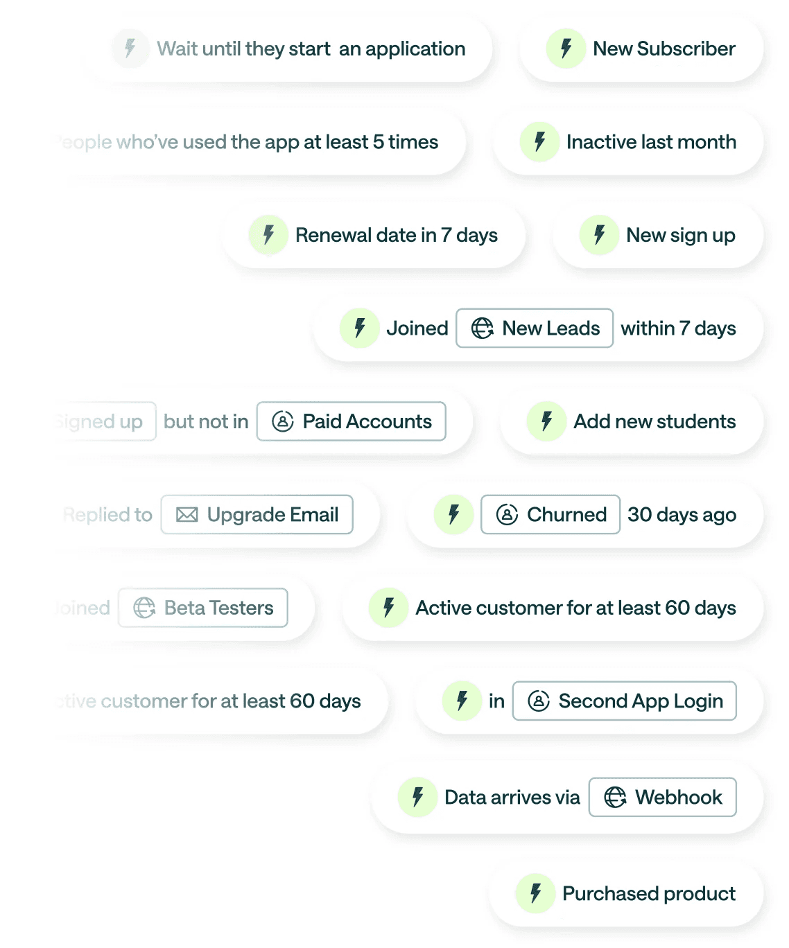 Group your users into segments or trigger messaging based on critical moments in your customer's lifecycle using events.