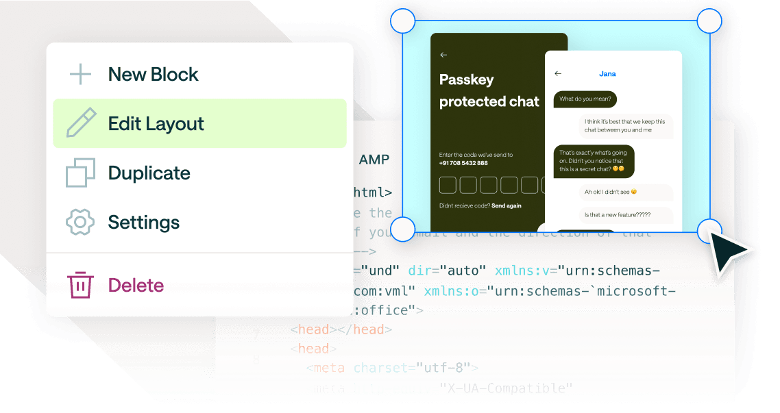 Choose to code your emails from scratch, use a drag-and-drop editor, or start with our email and in-app message templates.