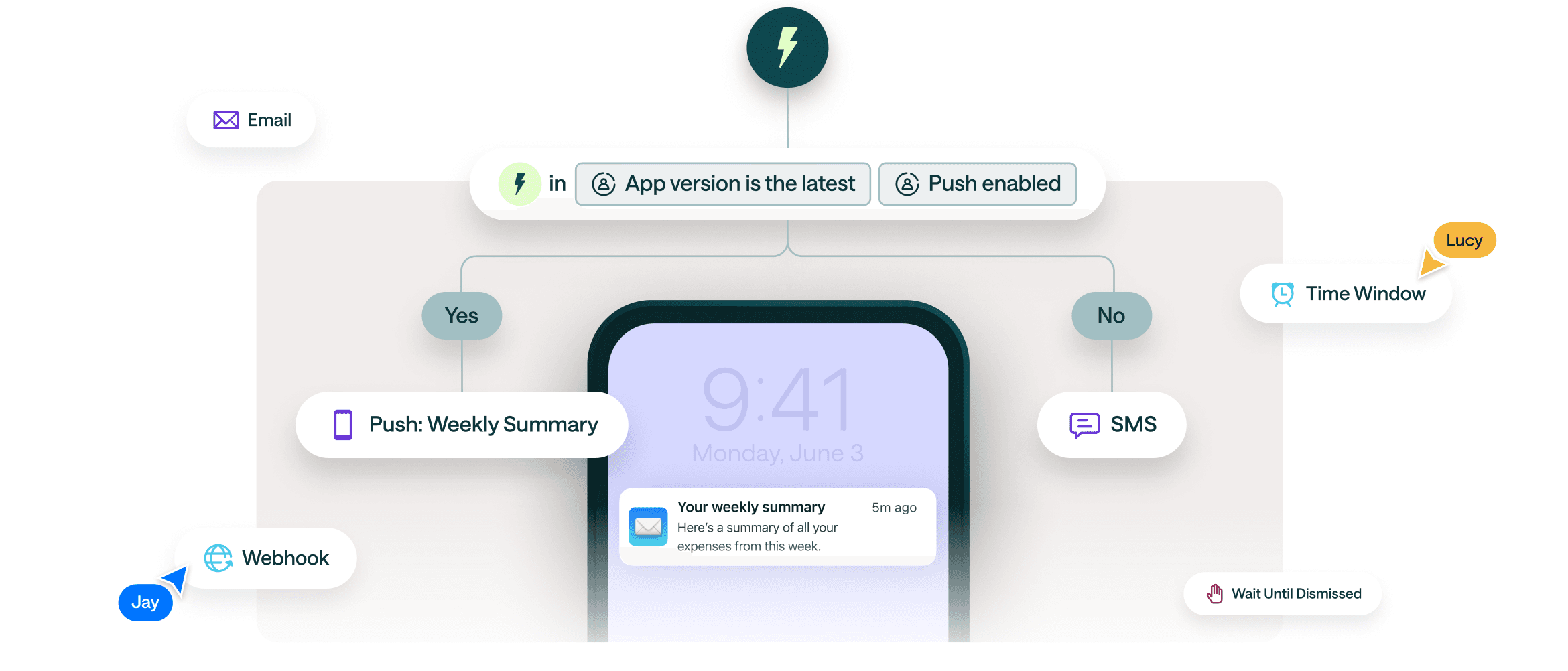 Our modular SDKs streamline mobile development. Identify users, track events, and send push notifications and in-app messages without writing your own integration from scratch. Our SDKs are split into packages for flexibility, allowing you to add only what you need to minimize the impact on your app's size.